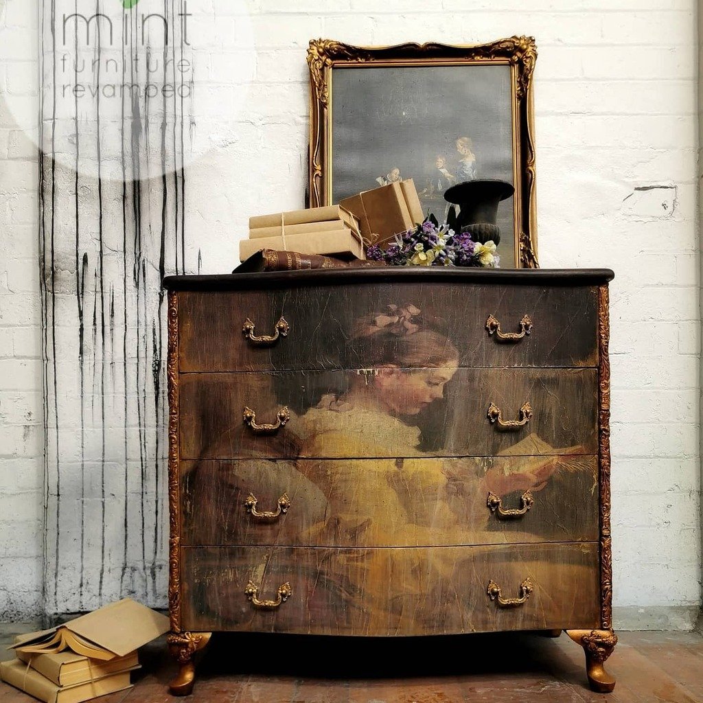 Los papeles de decoupage de Mint by Michelle estan diseñados especialmente para el arte y la restauración de muebles. Cada diseño está disponible en dos tamaños, A1 y A3, y está impreso en papel específicamente elegido para decoupage. Todos los diseños de Mint by Michelle se realizan con papeles elegidos meticulosamente para garantizar que tus proyectos se conviertan en obras de arte una vez finalizados.